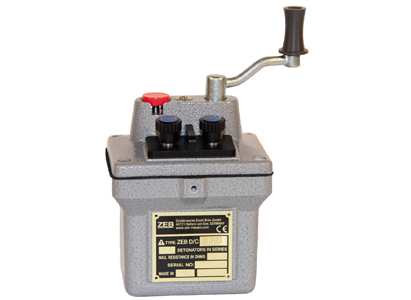 Our blasting machine ZEB/D/CU100K is the most powerful D-Series blasting machine that ZEB offers. The machine is equipped with a special circuit that allows it to be used in gassy mines and firedamp situations. The heavy-duty design with aluminum alloy housing is developed for long and reliable service. The housing is painted in a gray hammer effect finish with all stainless steel parts for a long lasting professional appearance. The charging crank is removable to protect the machine against unauthorized usage. If the capacitor is charged to the fire ready state the indicator bulb on top lights. Simply push the red fire push button to initiate. The discharge energy immediately reaches its maximum value that ensures a fast and reliable ignition of all applicable detonator types (shown on next page). The maximum number of detonators of each type is defined by the maximum electrical resistance of the ignition circuit.